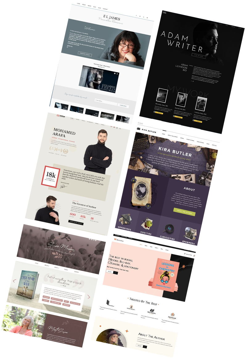 We design responsive wordpress author websites using WordPress templates optimized for book author websites so your site looks perfect on any device. Rather than wrestling with website code, let our designer handle every step of the process. They will create a stunning author site that increases visibility and sales while requiring minimal maintenance. Our designers understand the unique needs of authors, including those for book author websites and self-published author websites, and work closely with you to create a website that reflects your style and brand. We offer personalized support and guidance throughout the design process to ensure your website meets your expectations. With our expertise, you can focus on your writing while we take care of the technical details to make your author website stand out
